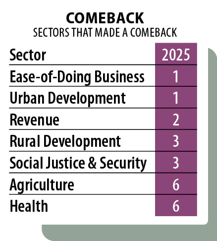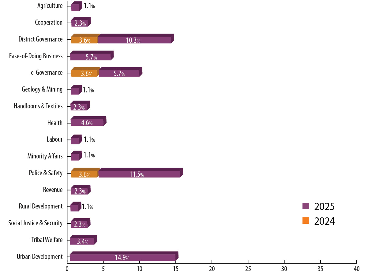 Rural Development and Social Justice & Security reflect a similar trajectory. Governance systems in these sectors have focused on better targeting, streamlined delivery and improved coordination between departments. Welfare programmes are increasingly managed through integrated platforms that reduce leakages and improve beneficiary experience.