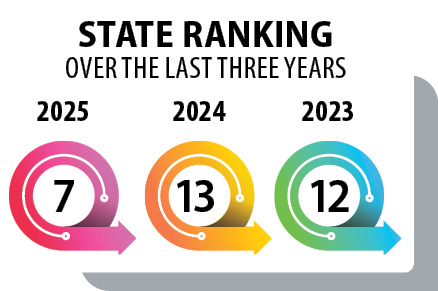 In Education, the state ranks second nationally in 2025. Digital classrooms, teacher capacity-building platforms and structured monitoring of learning outcomes have improved school-level performance.