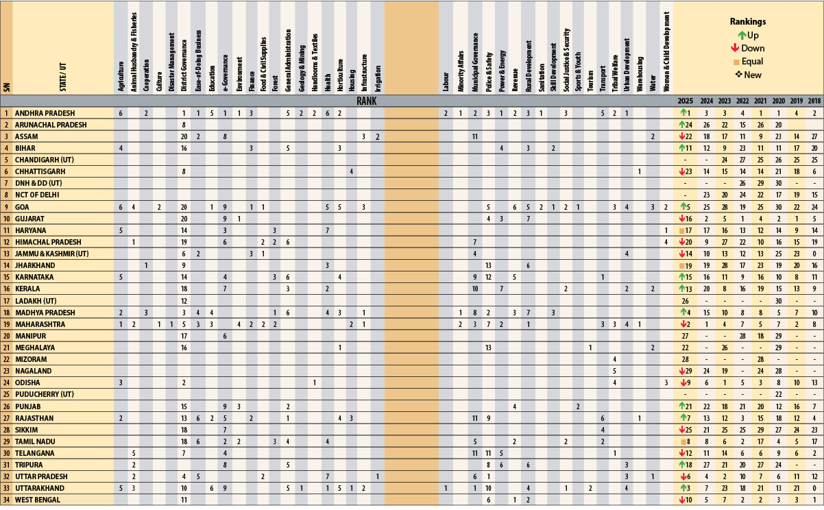 These movements indicate that governance rankings are increasingly dynamic. States can no longer rely on legacy strengths or past performance. Continuous innovation, monitoring and institutional learning are now prerequisites for maintaining or improving rank. The competitive nature of the rankings is driving states to benchmark themselves more rigorously, adopt best practices and pursue evidence-backed reforms.