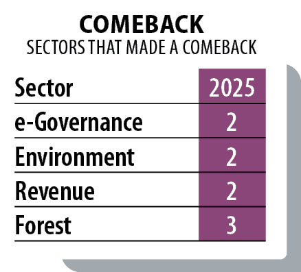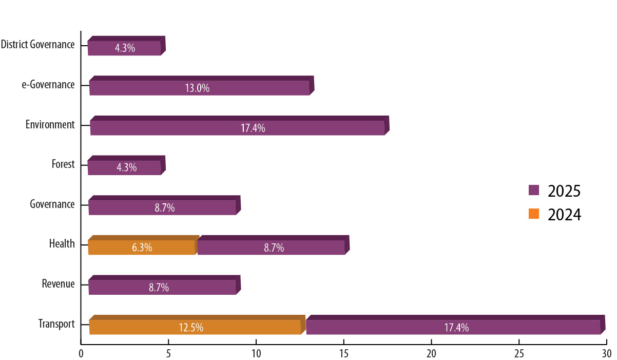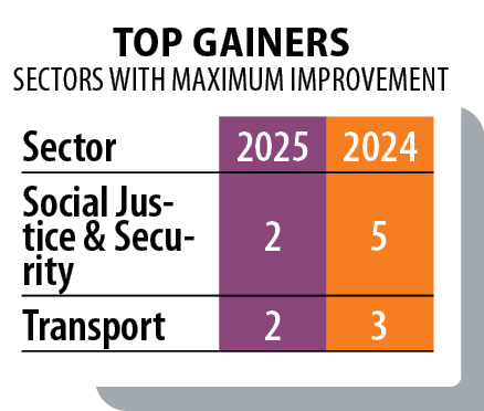Retention in the top ten in 2025 underscores this steadiness. Improvements in Transport and Social Justice & Security, recovery in Environment, e-Governance, Revenue and Forest and strong participation across multiple categories collectively reinforce institutional depth.
