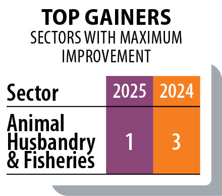 For a hill economy, livestock and fisheries are not peripheral, these are livelihood anchors. Himachal’s elevation to the top position in this category reflects systematic strengthening of veterinary outreach, breed improvement initiatives, cold-chain support and digital livestock tracking.