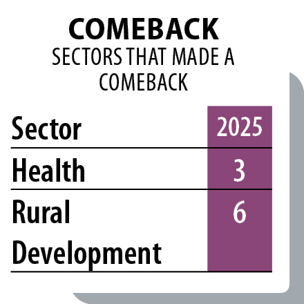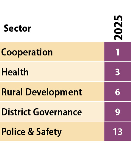 Educational recovery suggests renewed emphasis on human capital. Leadership in Cooperation points to rural economic confidence. Strong rural development performance reinforces inclusion