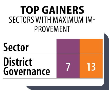 The upward movement to #7 in District Governance is especially telling. It suggests that decentralised administration is gaining strength, supported by digital tools and structured monitoring