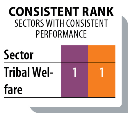 This sustained position reflects long-term investment in welfare delivery, educational outreach, and structured beneficiary tracking. Digitised systems ensure transparency in scholarship distribution, livelihood programmes, and community development initiatives. Inclusion here is not episodic; it is embedded. Maintaining leadership in Tribal Welfare year after year signals institutional commitment rather than short-term push.